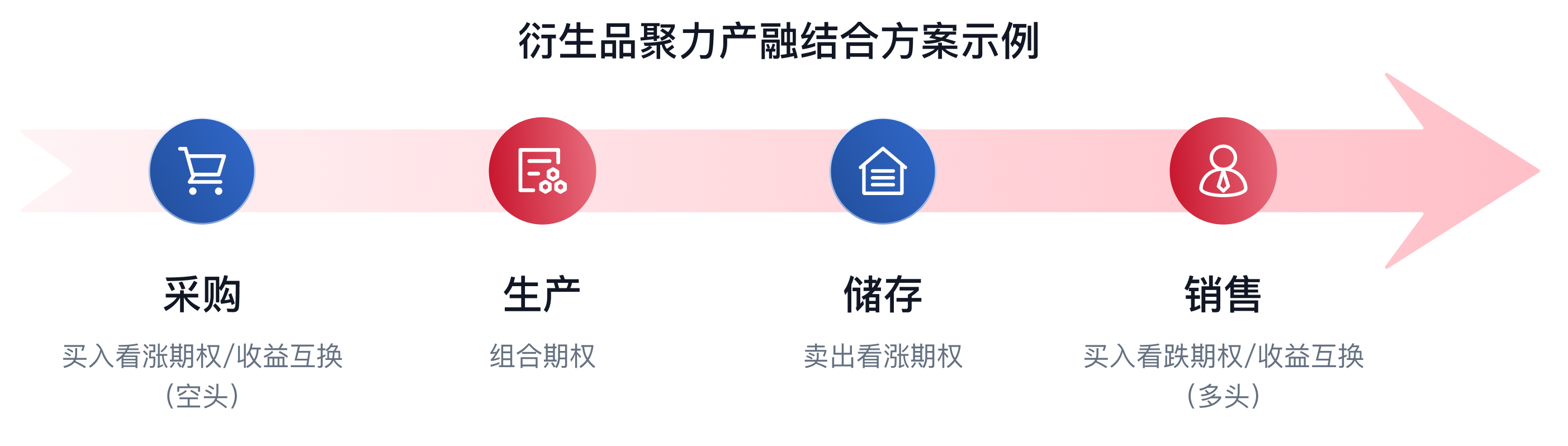 提供实体企业从采购、生产、储存到销售的全产业链风险管理解决方案,帮助实体企业降低采购成本、锁定生产利润、降低库存成本、增厚销售盈利。